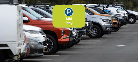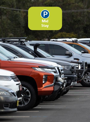 Just follow the airport signs along Nelson Bay Road, turn off onto Williamtown Drive, follow Williamtown Drive (680m), turn right into Kindler Way (850m), turn left into the Mid Stay car park.