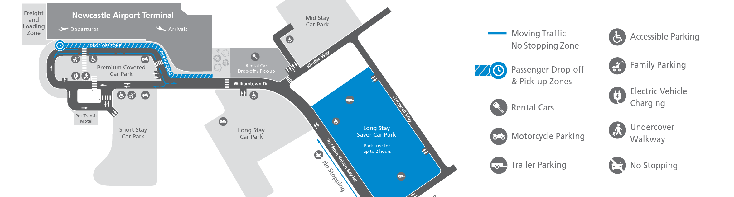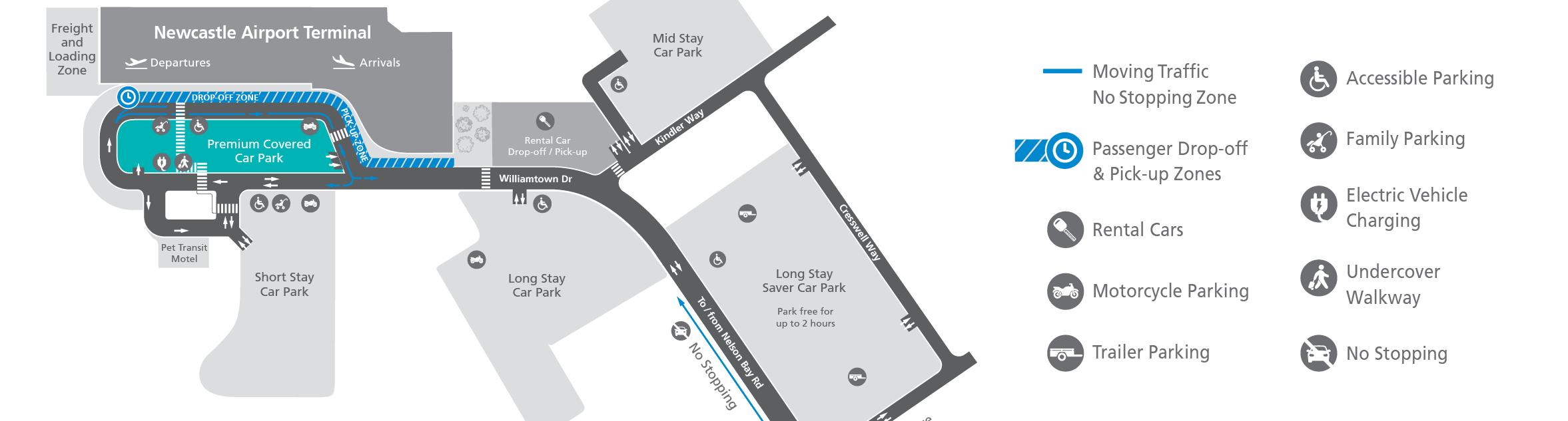 Just follow the airport signs along Nelson Bay Road, turn off onto Williamtown Drive, follow Williamtown Drive (990m), then turn right into the Premium Covered car park.